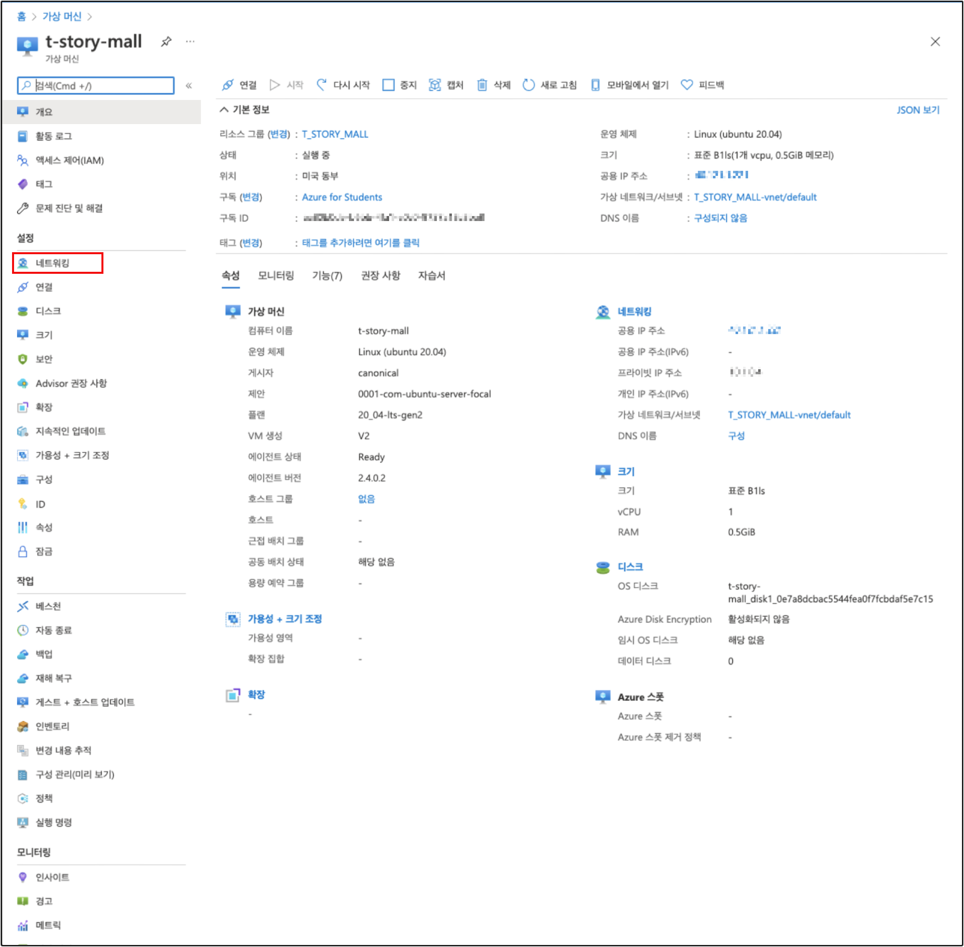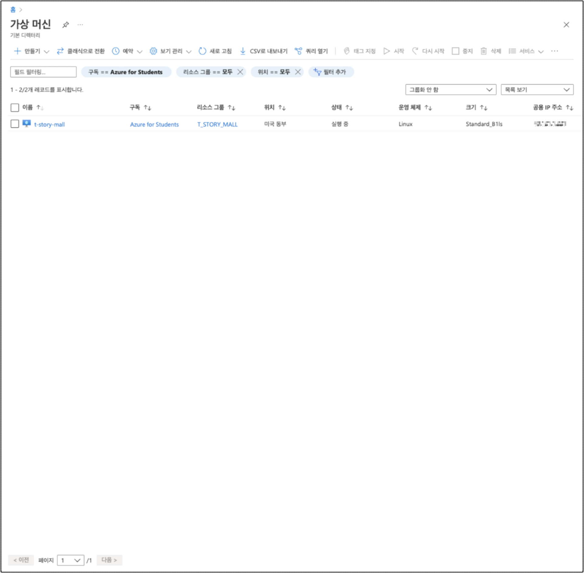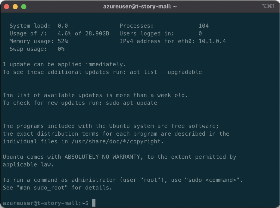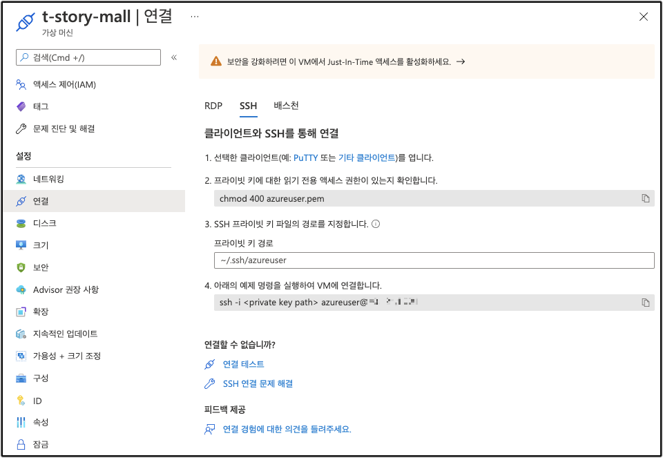 > ssh -i t-story-mall_key.pem azureuser@가상머신 IP