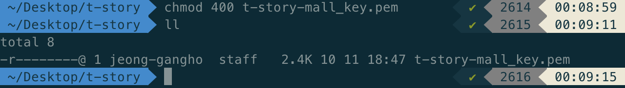 먼저 pem 파일의 권한을 변환하도록 하겠습니다.