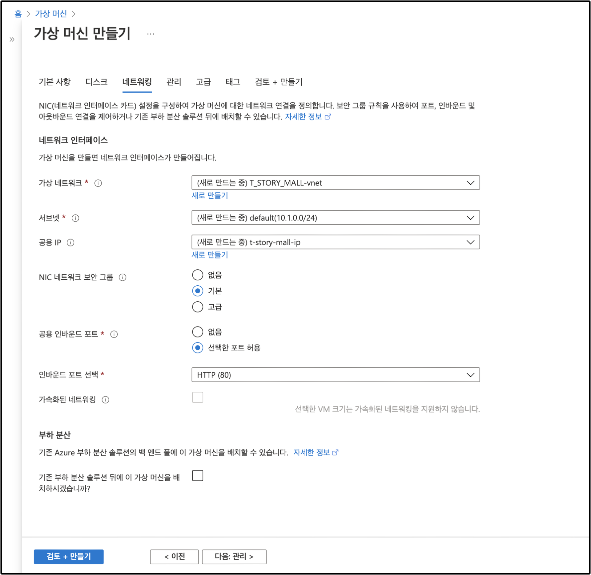 저는 T_STORY_MALL로 만들었습니다. - 가상 머신 이름 : 가상 머신의 이름을 넣어 줍니다. t-story-mall 로 지어주었습니다. ('.'이나 '-' 만 특수 문자가 가능 합니다)