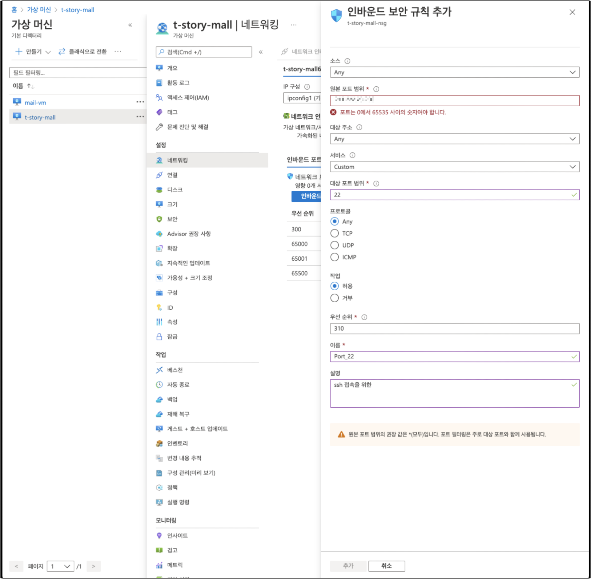 > ssh -i t-story-mall_key.pem azureuser@가상머신 IP