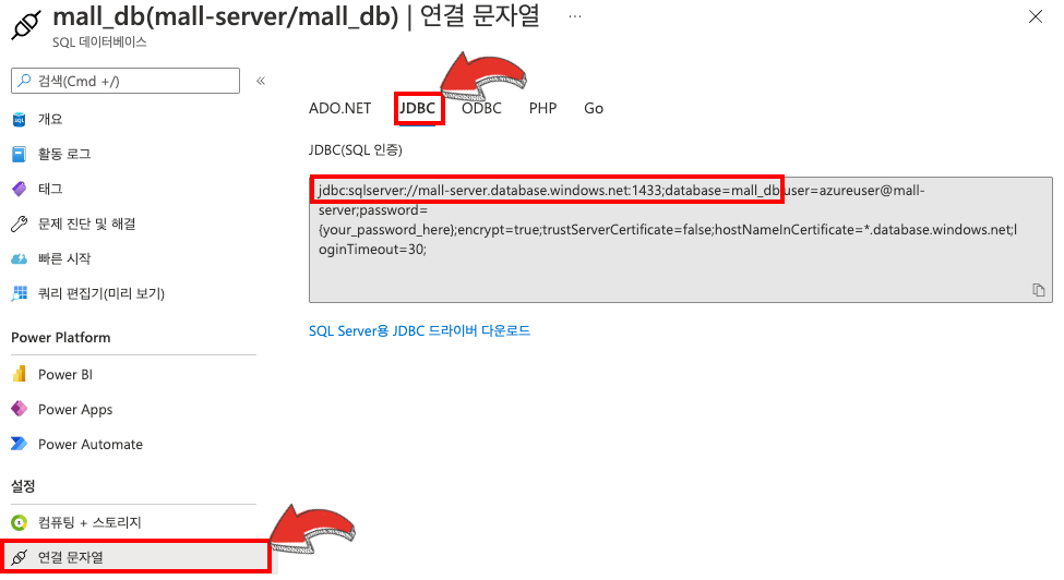 연결 문자열 > JDBC에서 확인 하실수 있습니다.