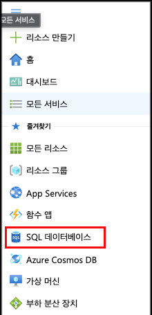 1. 로그인 후 왼쪽 햄버거 메뉴에서 'SQL데이터베이스'를 선택합니다.