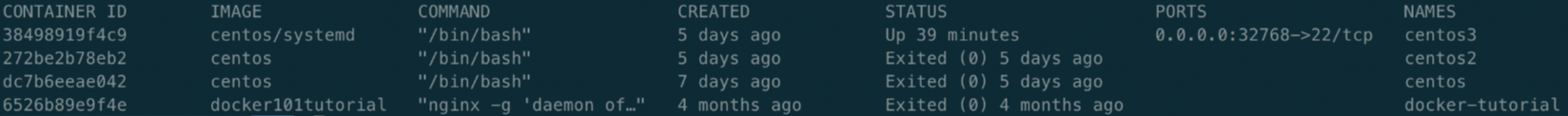 명령어를 입력하면 아래와 같이 모든 컨테이너가 검색된다.
