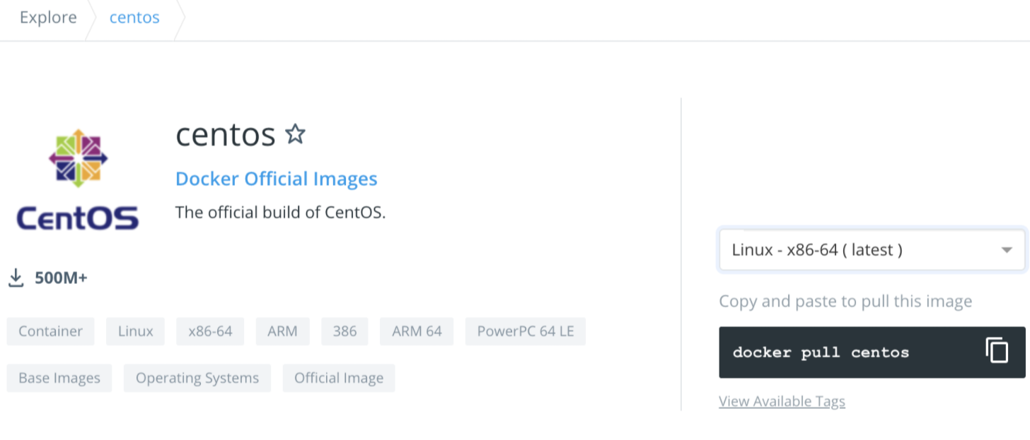 centos 클릭해서 들어가게 되면 'Copy and pasts to pull this image' 밑에 copy창이 나오는데
