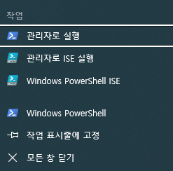 관리자 권한은 power shell 아이콘의