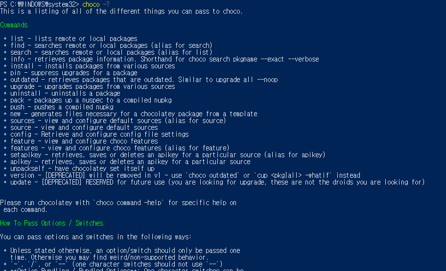 chocolatey패키지를 설치하는 방법을