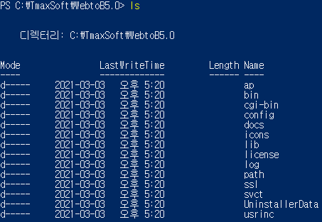 WebtoB5.0 > bin으로 진입 하시면 아래 명령어를 기입해 줍시다.